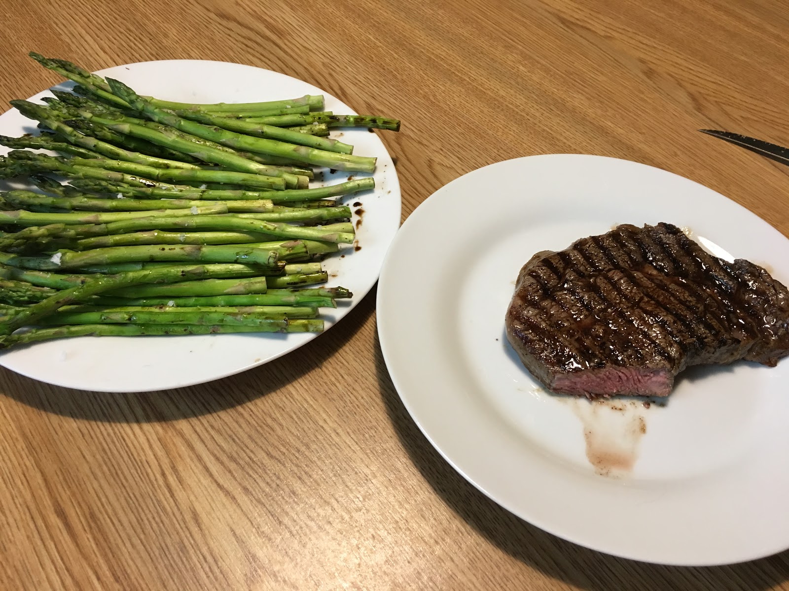 Ribeye steik, võis praetud minispargel