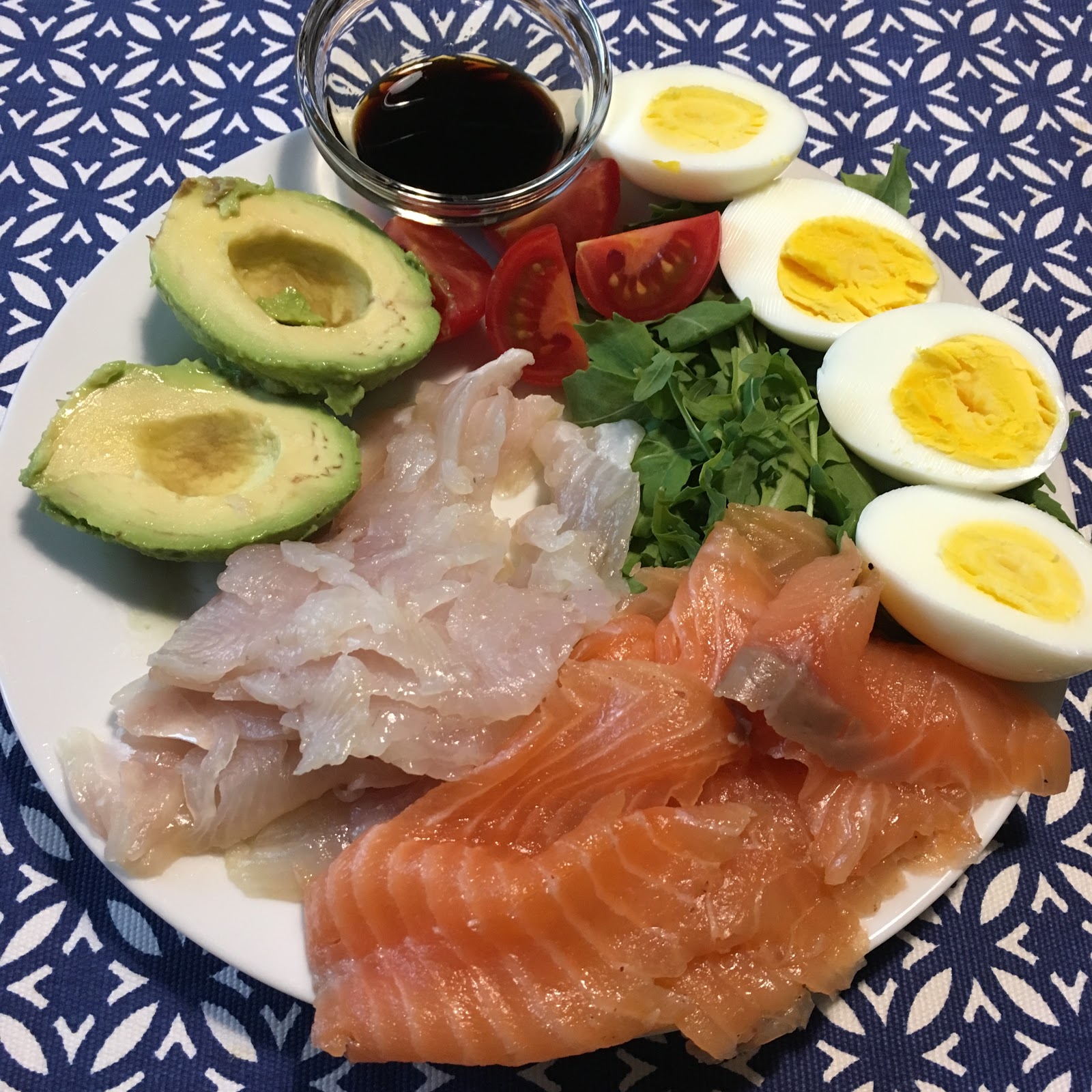 graavisiig, graaviforell, rukola, tomat, avokaado, keedumuna, tamari kaste